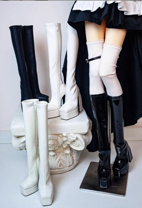 即納 ドール用 ハイヒールブーツ 靴 ラックエナメルブラック 男の子 68cm人形用 BJDDOLL
