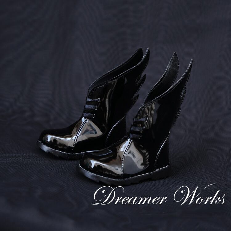 ドール用お靴/短ブーツ SD/MSDサイズ人形用 黒 翼付き カッコウイイ 軍隊風/DWS