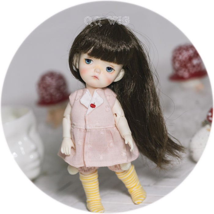 BJD人形用ウィッグ ストレート ブラウン QQ-64 人工モヘア MSD/YOSD/1/8サイズ用ドールウイッグ/Dolly Planet