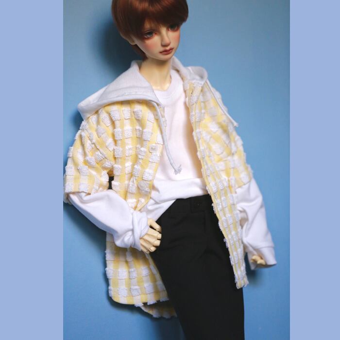 ドール用衣装 カーディガン チェック柄 フード付き イエロー/レッド A293 70+cm/70cm/SD/MSDサイズ人形用/Bears