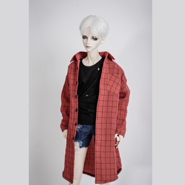 BJD人形用衣装 長シャツ レッド/ホワイト A230 70+cm/70cm/SD/MSDサイズ人形用/Bears