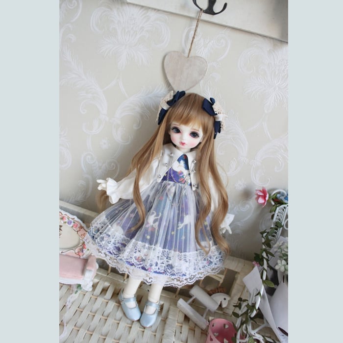 BJD人形用衣装 洋装/ドレス 可愛い レース ブルー MSD/YOSDサイズ人形用/Xmya