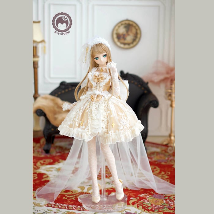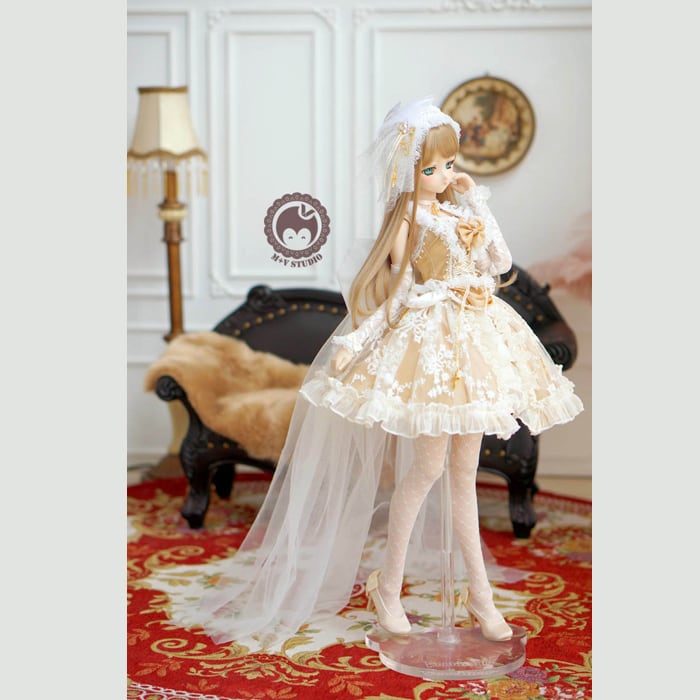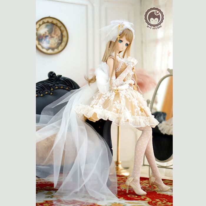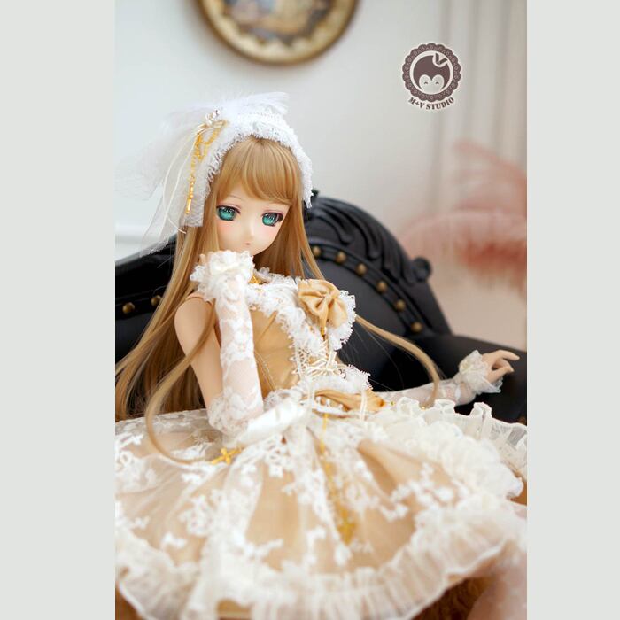 BJD人形用衣装 洋装 復古 気質 ドレス chic ホワイトゴールド DD/SD16サイズ人形用/猫屋