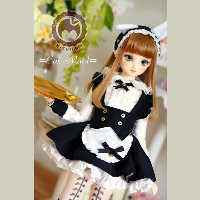 BJD人形用衣装 制服/メイド服 萌え萌え 可愛い チョコ色/ブラック Cat Maid MDD/MSDサイズ人形用/猫屋