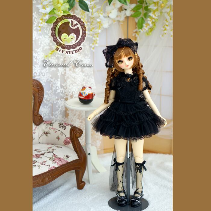 BJD人形用衣装 洋装/ウデングドレス 可愛い ホワイト/ブラック Eternal Cross SD10/SD13サイズ人形用/猫屋
