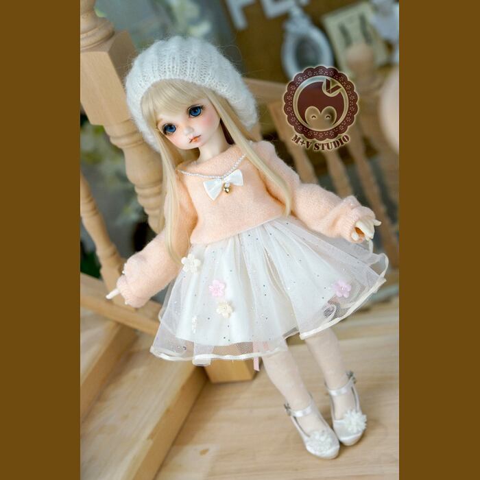 BJD人形用衣装 洋装セット 春秋冬適用 淑女 可愛い アイボリー MSD/RL Holidayサイズ人形用/猫屋
