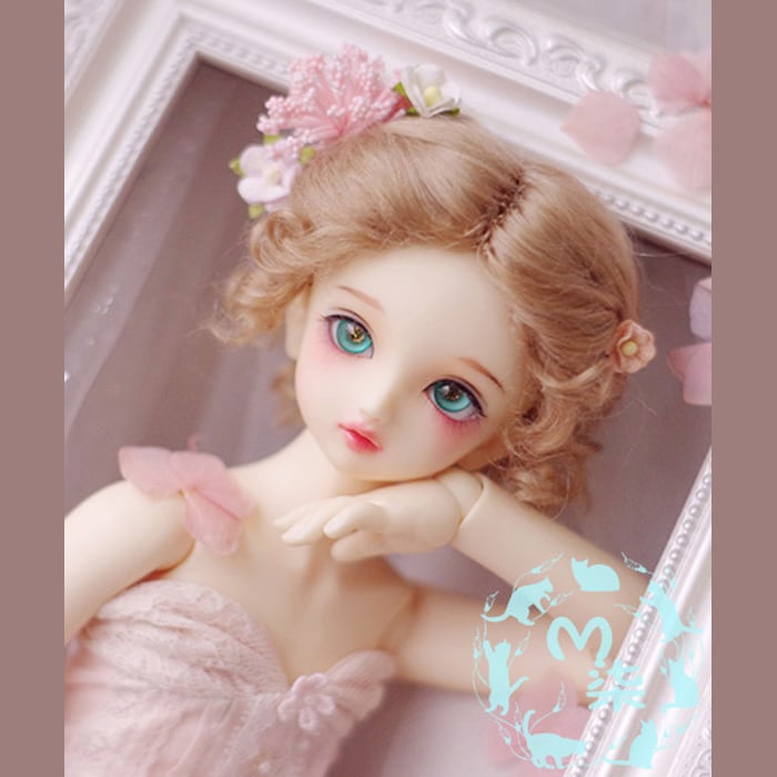 BJD人形用ウイッグ ⭐️Wig 編み髪 気質アップ 人工モヘア ミルクティーブラウン/オレンジ brown orange MiuCat 小顔SD/MSD/YOSDサイズ人形用