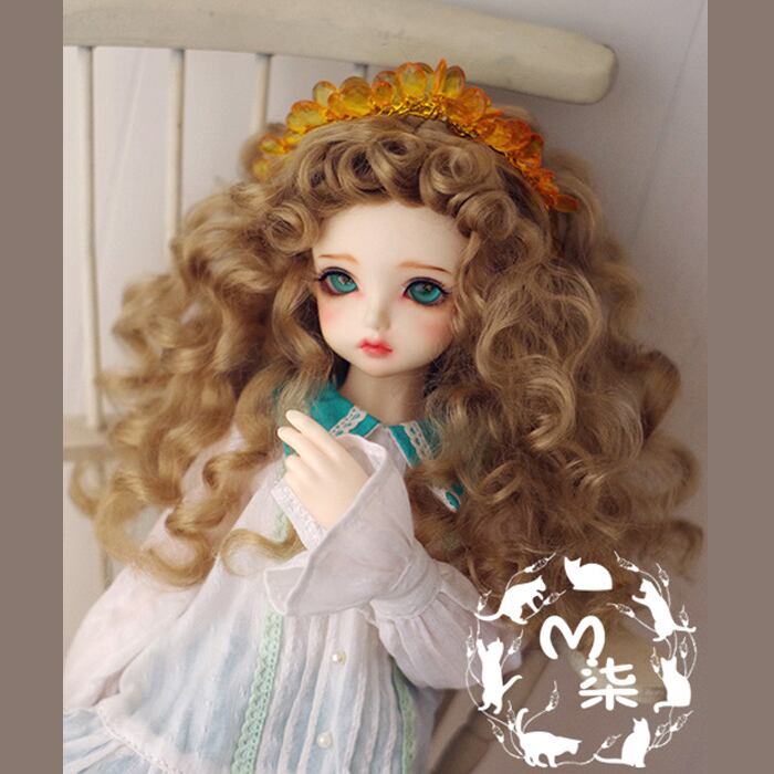 BJD人形用ウイッグ ⭐️Wig ロング long カーリーヘア カール 人工モヘア オレンジ/ミルクティーブラウン orange brown MiuCat 小顔SD/MSD/YOSDサイズ人形用