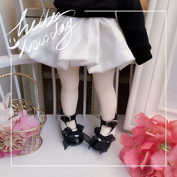 BJD人形用フラットシューズ shoes ⭐️シューズ リボン付き 蝶結び ブラック/ホワイト black/white Xmya YOSDサイズ人形用