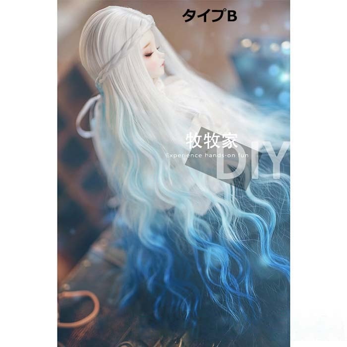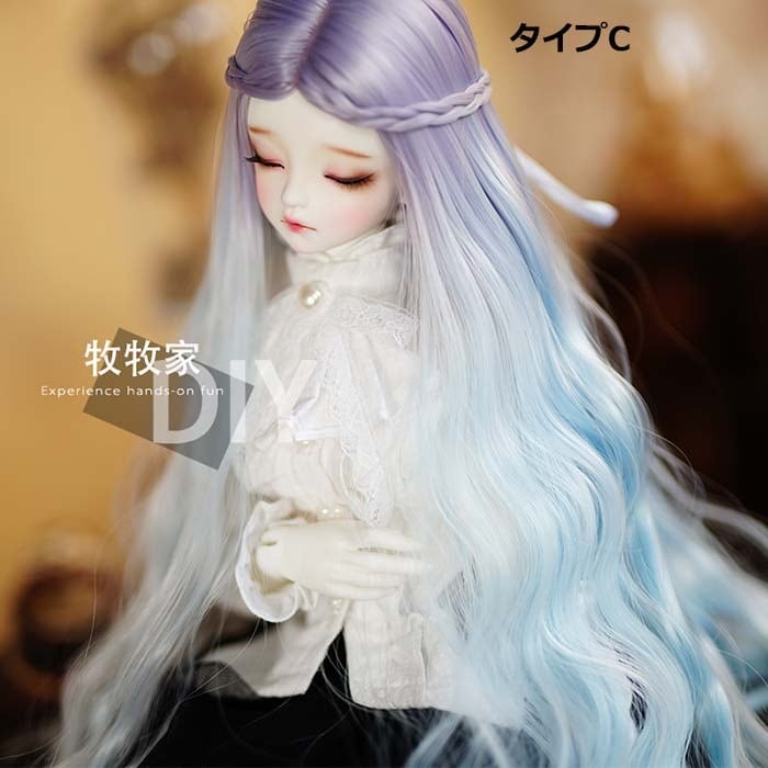 BJDドール用ウィッグ wig スーパーロング ⭐️superlong 長巻き髪 カール 高温糸 カラフル ブルー パープル グラデーション MMJ SD/MSD/YOSDサイズ人形用