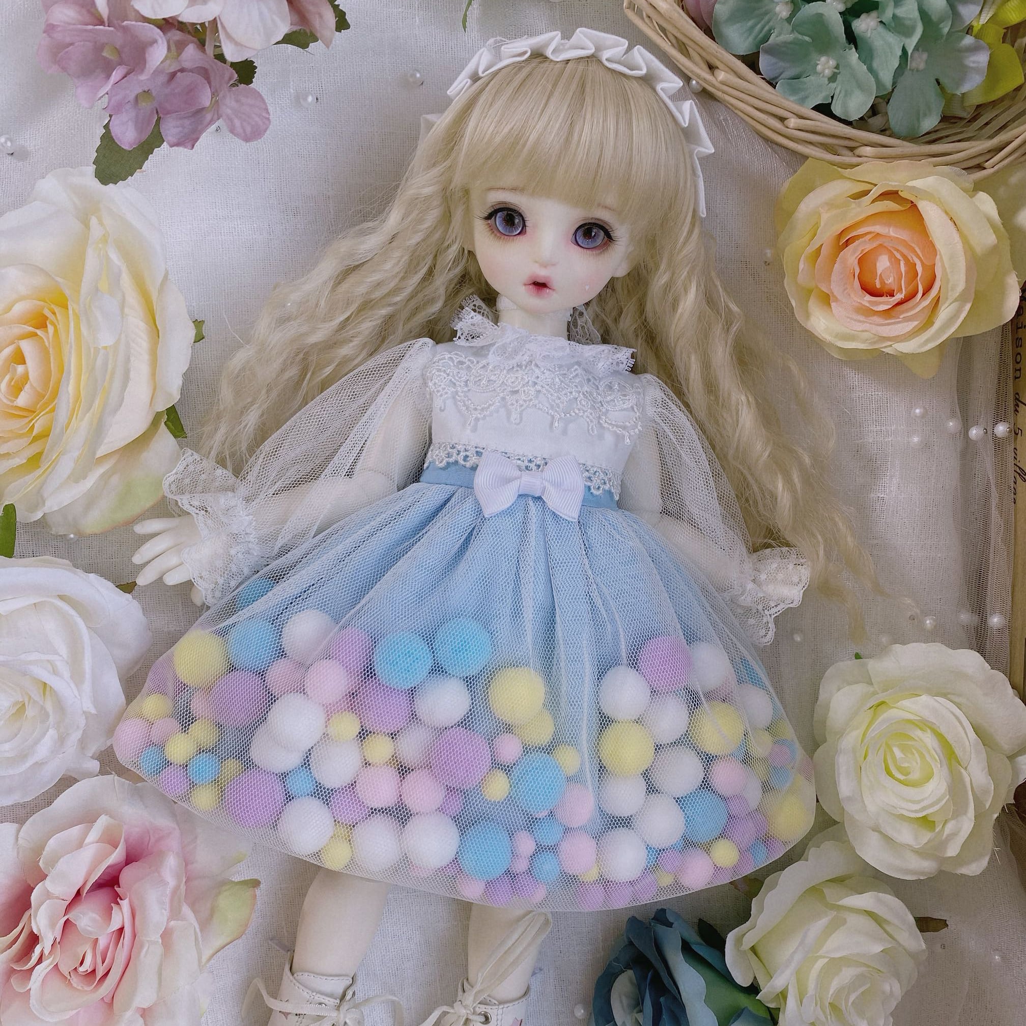 BJD人形用衣装 手つくり洋服/ドレスセット colorful fluffy balls イェロー/ダークブルー/ピンク/ライトブルー SD/MSD/幼SD/サイズ人形用/xmya